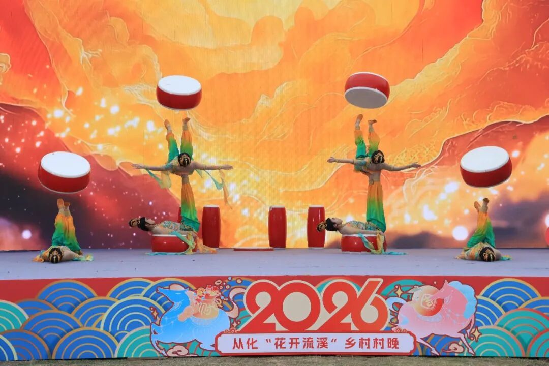 本次村晚由广州市“百千万工程”指挥部办公室、广州市文化广电旅游局联合从化区人民政府主办,以“两山融韵贺新岁 村晚聚势兴乡村”为核心脉络,为群众送上兼具乡土味、文化味与年味的沉浸式新春体验。