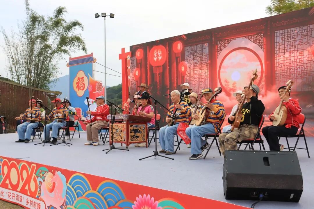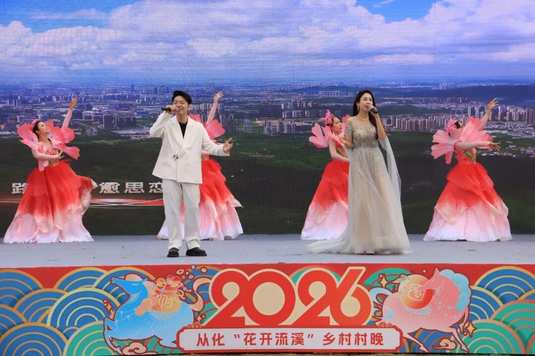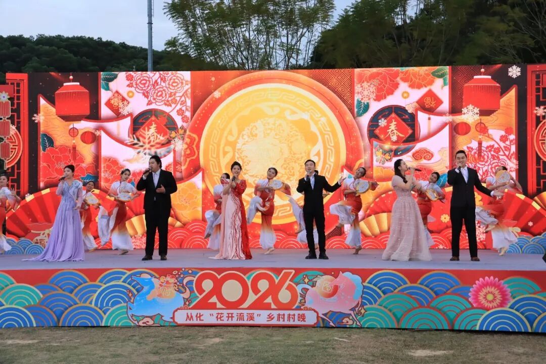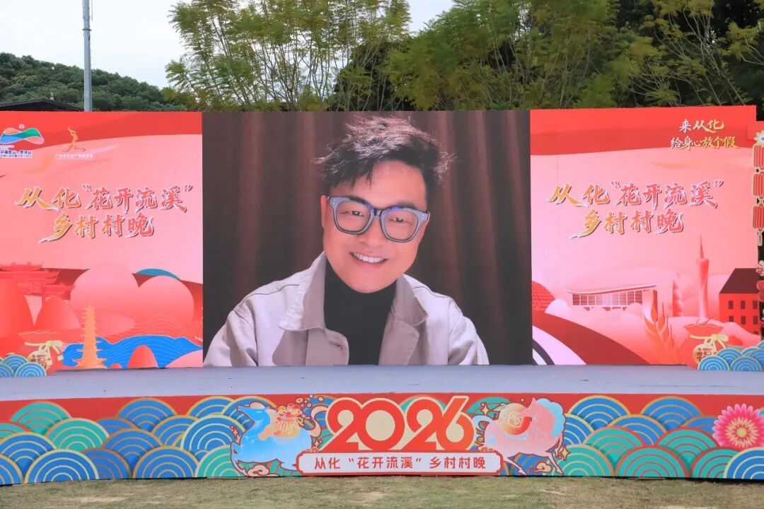 2月7日下午,从化区江埔街罗洞工匠小镇广乐府草坪前热闹非凡,欢声笑语不断。2026年环南昆山—罗浮山引领区(广州)“千乡兴业 万家纳福”乡村村晚系列活动——从化“花开流溪”乡村村晚文艺演出在这里举办,为村民们带来一场多元化的文化盛宴。
