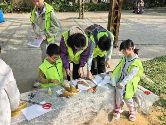 “垃圾地图”共创任务。 大小志愿者们不仅细心捡拾散落的废弃物,更化身为“环境观察员”。他们主动邀请沿途游客一同寻找、定位公园内的垃圾桶,并在特制地图上进行标注记录。这一过程不仅让志愿者直观了解公园环卫设施分布,引导公众思考如何更便捷地进行垃圾投放,也通过亲子间的互动讨论,在青少年心中埋下关注公共空间规划、主动履行公民责任的种子。